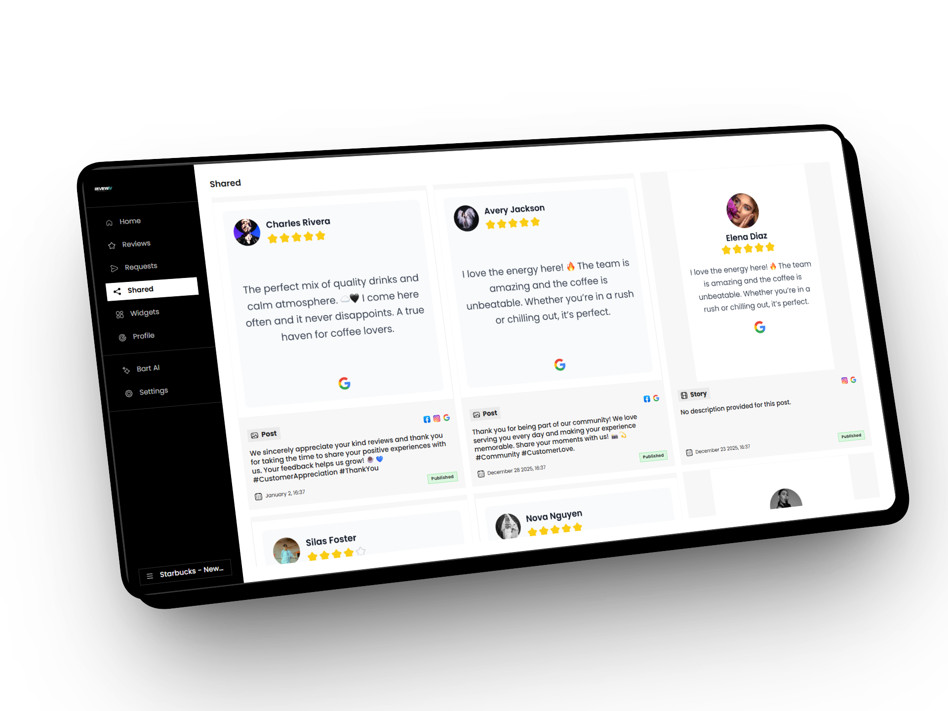 Stop wasting time on multiple websites to manage your reputation. The ReviewNV Dashboard consolidates everything in one place, allowing you to collect, manage, and showcase reviews - stand out on Google and win more customers with less effort.