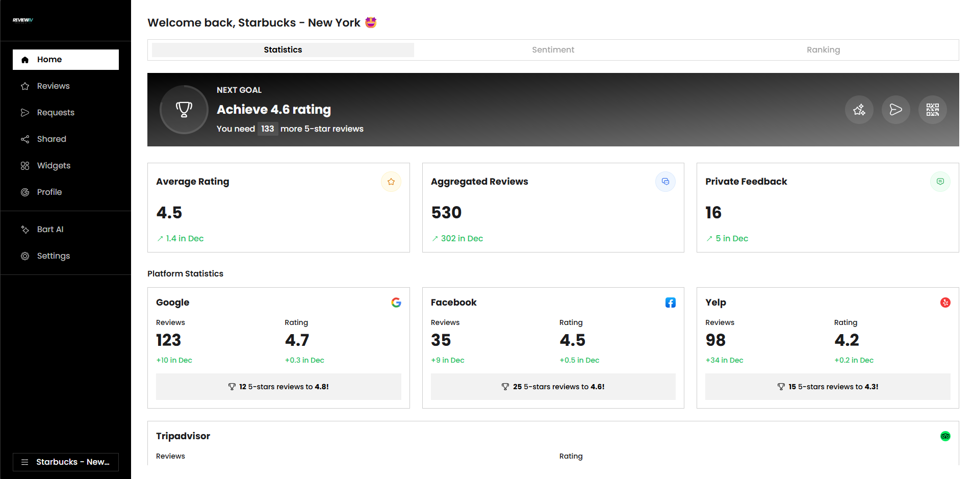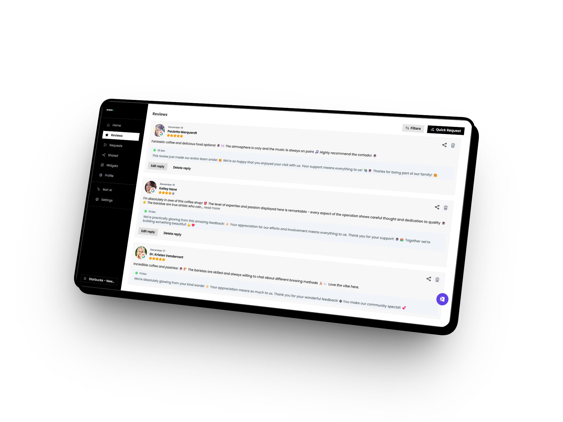 Receive reviews from multiple platforms and manage all your feedback in one place.